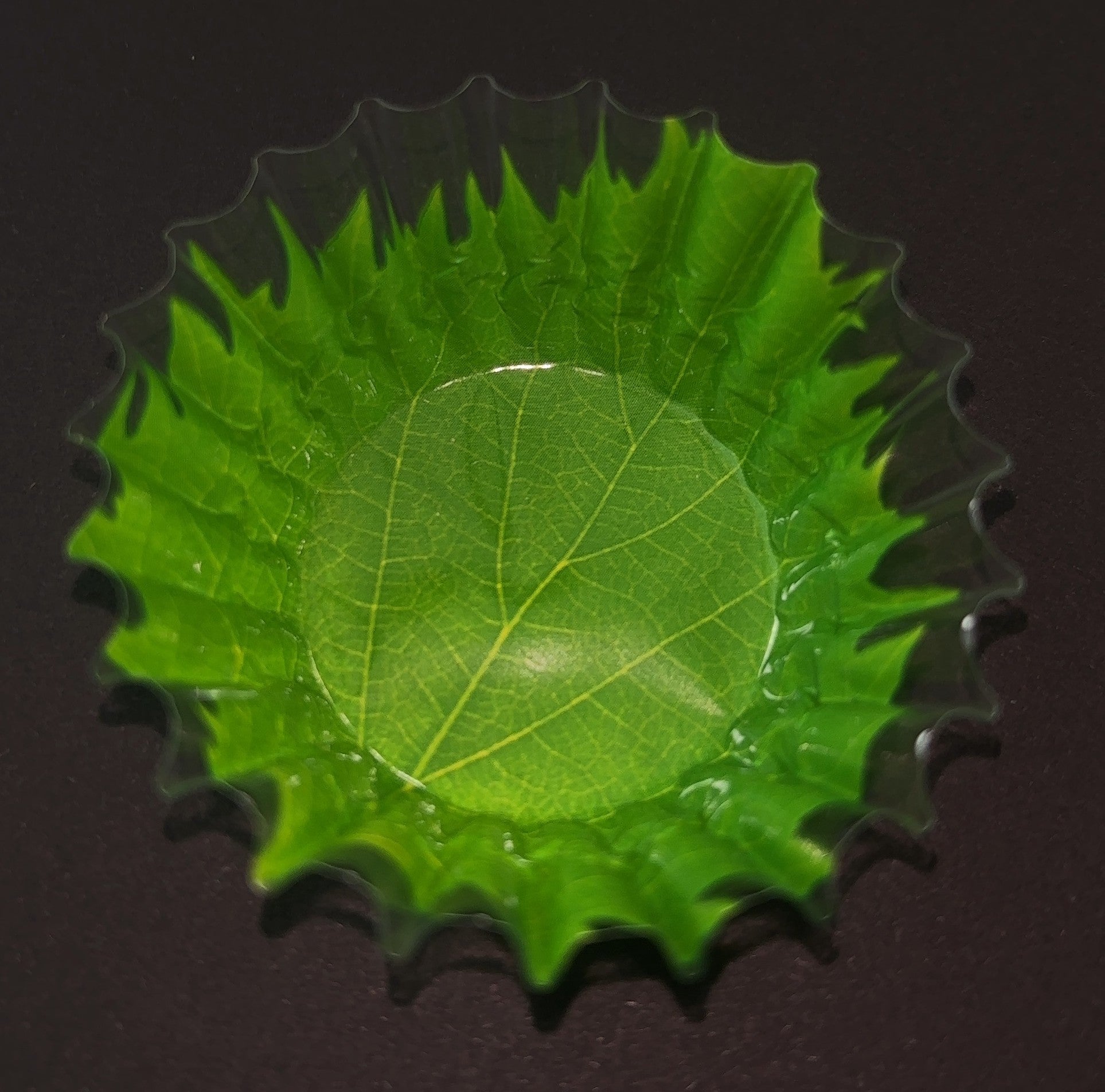 大葉のデザインを施したフィルムカップは料理に爽やかな緑を添え、見た目にも華やかさを加えます。清潔感と季節感を演出します。爽やかなアクセントを加えるフィルムカップを取り入れてみませんか。